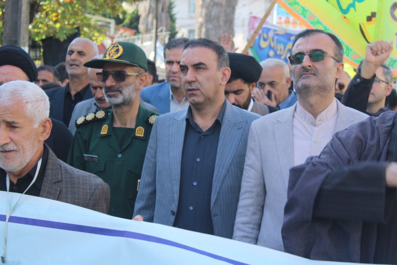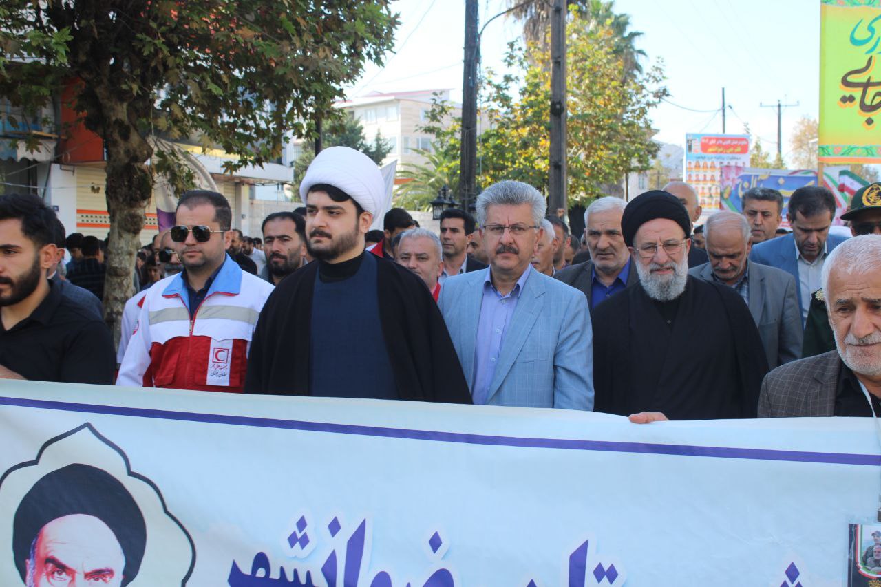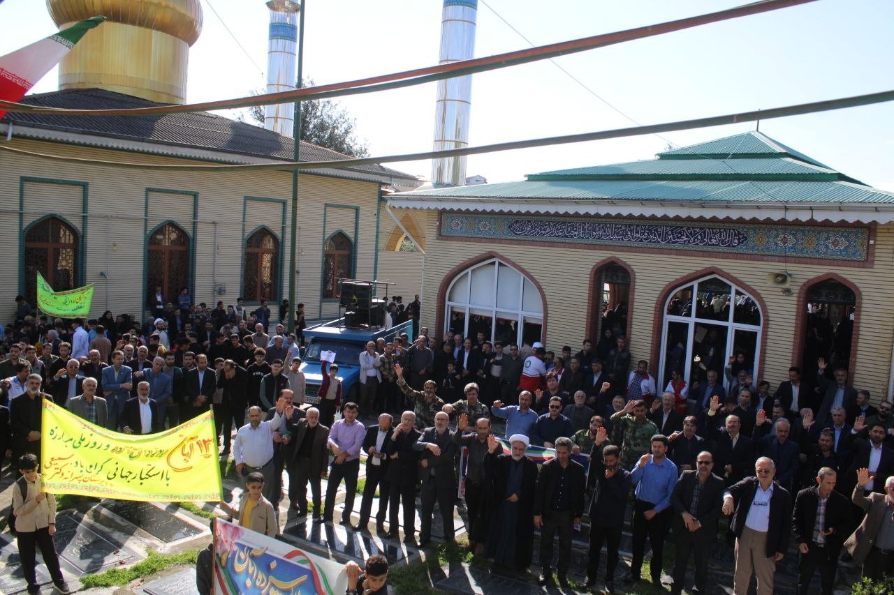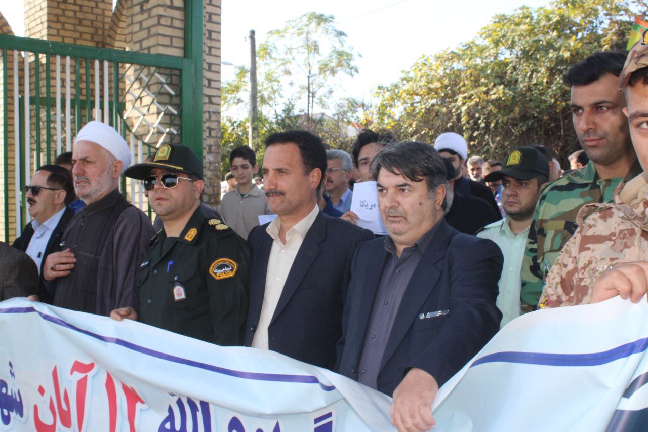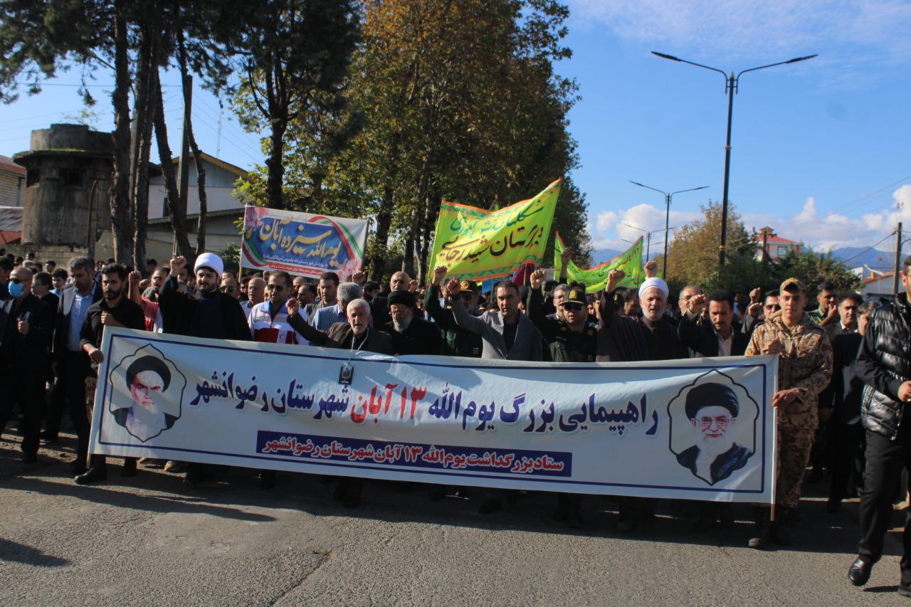 راهپیمایی یوم الله سیزده آبان در رضوانشهر با شعار ملی متحد و استوار ، مقابل استکبار با حضور مهندس ایرج شاهی فرماندار ،امام جمعه ، اعضای شورای تامین ، معاون سیاسی،امنیتی و اجتماعی،بخشدار مرکزی،روحانیت معزز و دیگر مسئولین شهرستان در کنار اقشار مختلف مردم ،دانش آموزان و دانشجویان از مقابل سپاه ناحیه به سمت بقعه متبرکه امین السلطان غریبنده(ع) برگزار شد.
