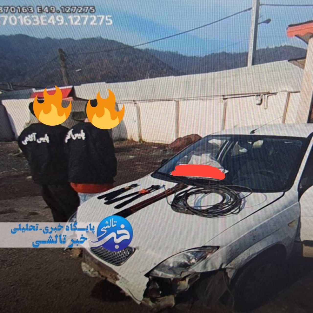 آلات سرقت و سیمهای مسروقه کشف شده از سارقین به همراه خودرو، ضبط و توقیف شده است.