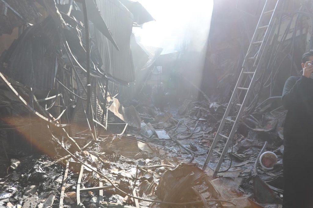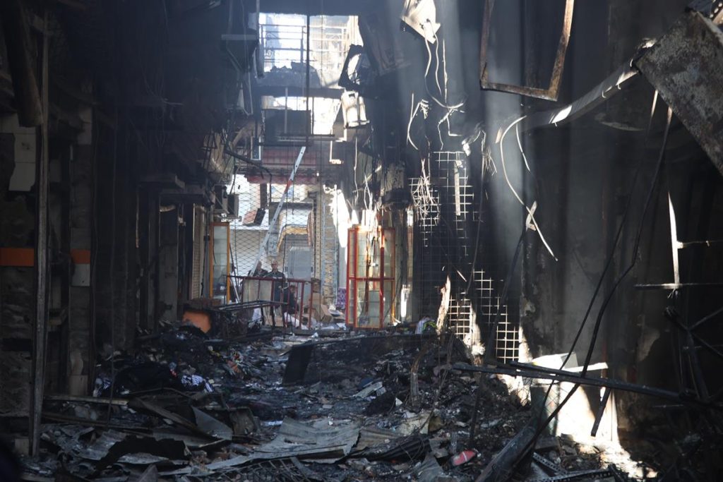 اکنون دیگر برخی از کاروانسراهای قدیمی بازار در آتش سوختند و حتی نمیتوان میزان خرابی در آن را به تصویر کشید.